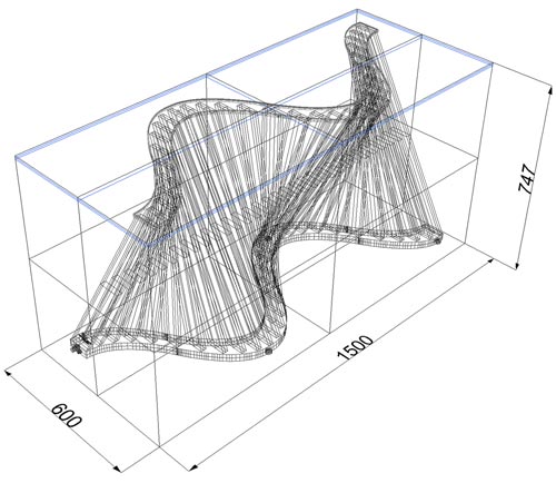 The structure is made from clear acrylic bars, carefully sanded to make frosted edges. The base contains dimmable natural white LEDs which transmit a delicate light to the frosted edges of the acrylic bars. A 12mm toughened shatterproof glass top rests on the server structure.